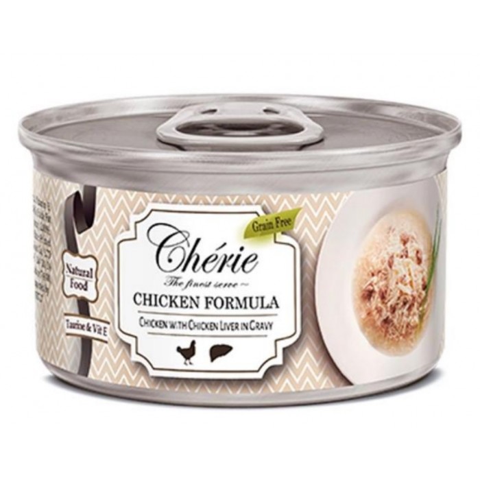 Cherie Signature Gravy Chicken & Liver - насичений високим вмістом натуральних компонентів, які корисні для здоров'я вашого вихованця, підходить для будь-яких порід та віку. Завдяки простому натуральному смаку і фірмової підливи Chérie Ви отримаєте розкішну смакову сенсацію для кішок. У кожному фірмовому рецепті представлені ніжні шматочки свіжих морепродуктів в чудовому соусі.