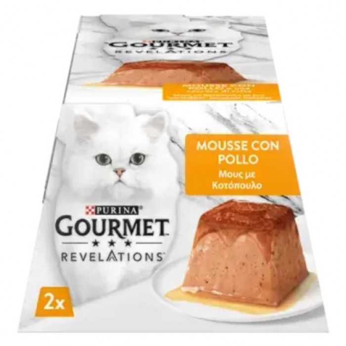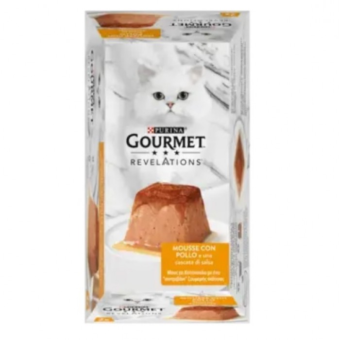 Вишуканий формат харчування для домашніх улюбленців — Gourmet Revelations Мус з куркою та підливкою — це повнораціонний вологий корм преміум-класу, створений спеціально для дорослих котів.