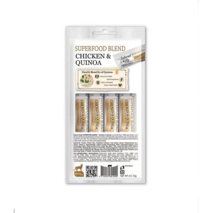 Опис Ласощі для котів Natural Kitty Creamy Treats Superfood Blend: курка і кіноа, в желе, 4 стіки по 12 г