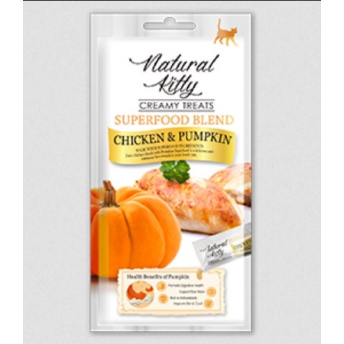 Опис Ласощі для котів Natural Kitty Creamy Treats Superfood Blend: курка та гарбуз, в желе, 4 стіки по 12 г