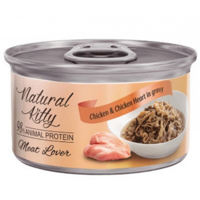 Основні характеристики Natural Kitty Meat&Fish Lover, вологий корм для дорослих котів, куряче філе та куряче серце в соусі, 70 г