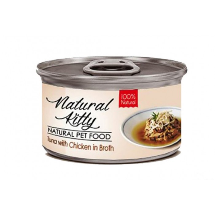 Опис Natural Kitty, вологий корм для дорослих котів, тунець і курка в бульйоні, 80 г
