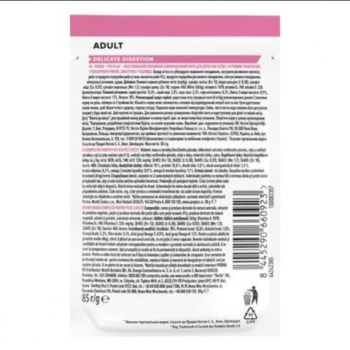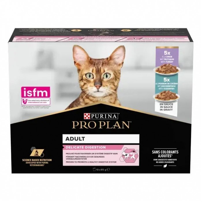 Відгуки про Purina Pro Plan Delicate Digestion, вологий корм для котів, чутливе травлення, з рибою, шматочки у підливці, пауч, 85 г
