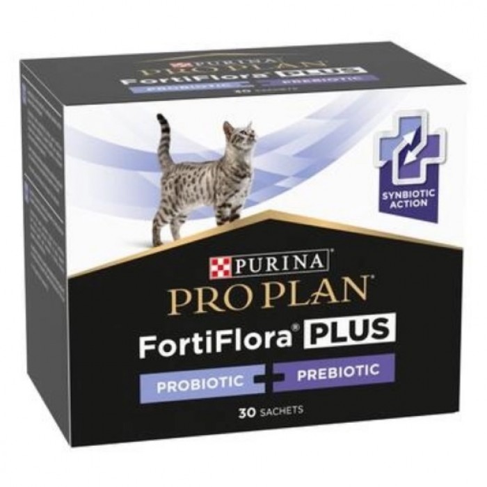 Purina Pro Plan FortiFlora PLUS (Фортифлора Плюс) - додатковий корм для дорослих котів та кошенят (після відлучення від матері) із синбіотичною дією пребіотика та пробіотика. Cприяє підтриманню здорового мікробіому, його балансу та зміцненню імунного захисту. Кожне саше містить гарантований рівень пробіотичних бактерій (мікрокапсульованих для підвищення стабільності в середовищі та ефективності) в поєднанні з пребіотиком рослинного походження.