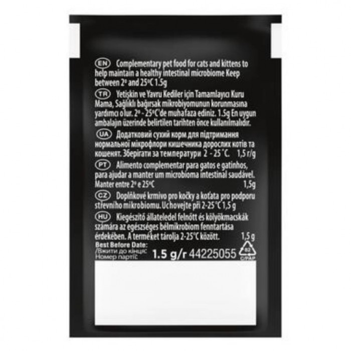 Purina Pro Plan FortiFlora PLUS (Фортифлора Плюс) - додатковий корм для дорослих котів та кошенят (після відлучення від матері) із синбіотичною дією пребіотика та пробіотика. Cприяє підтриманню здорового мікробіому, його балансу та зміцненню імунного захисту. Кожне саше містить гарантований рівень пробіотичних бактерій (мікрокапсульованих для підвищення стабільності в середовищі та ефективності) в поєднанні з пребіотиком рослинного походження.