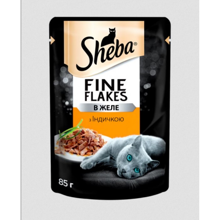 Основні характеристики Sheba Fine Flakes (Шеба Файн Флейкс), шматочки з індичкою у ніжному желе, 85 г