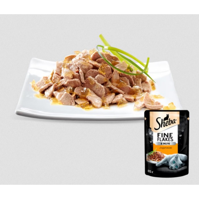 Опис Sheba Fine Flakes (Шеба Файн Флейкс), шматочки з індичкою у ніжному желе, 85 г