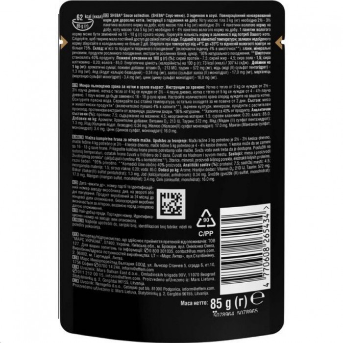 Повнораціонний вологий корм у вигляді шматочків індички в соусі для дорослих котів. Перетворює кожне приймання їжі улюбленця в справжнє задоволення, а також містить необхідні поживні речовини, вітаміни і мінерали.