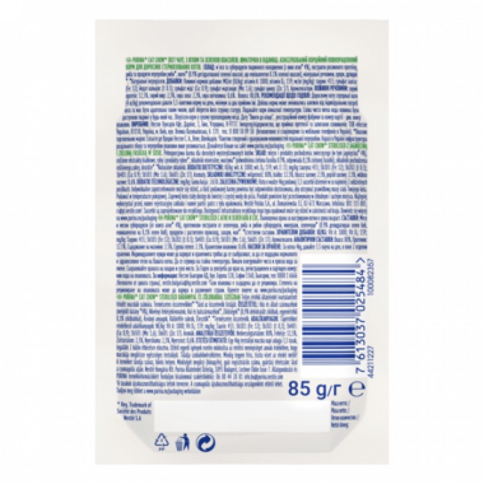 Основні характеристики Cat Chow Sterilised Ніжні шматочки з ягням та зеленою квасолею в соусі для кастрованих котів, 85 г