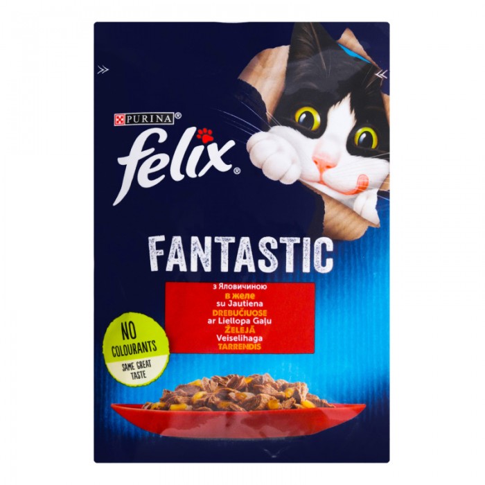 Опис Felix Fantastic (Фелікс Фантастік) з яловичиною, шматочки у желе, 85 г