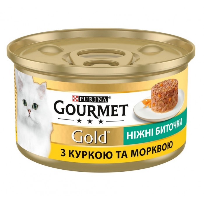 Вологий корм Purina Gourmet Gold Ніжні биточки для дорослих кішок з куркою і морквою, 85 г