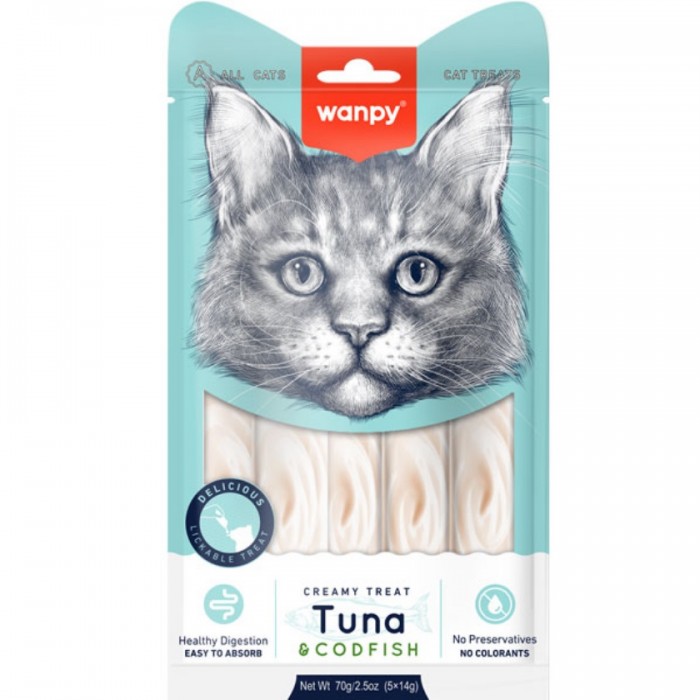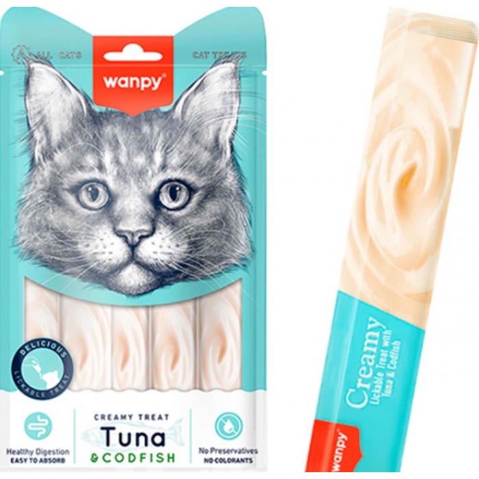 Wanpy Creamy Lickable Treats Tuna & Codfish – натуральні рідкі ласощі для котів, приготовані на основі елітного тунця й
