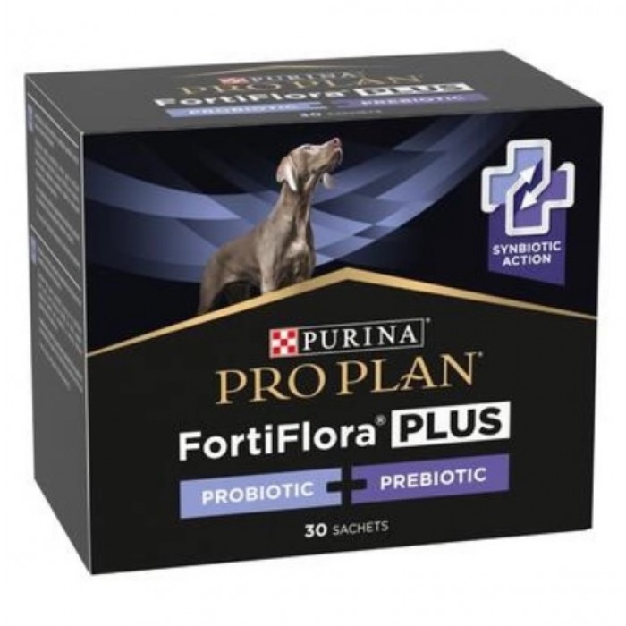 PURINA PRO PLAN FortiFlora PLUS (Фортифлора Плюс) - додатковий корм для дорослих собак та цуценят (після відлучення від матері) із синбіотичною дією пребіотика та пробіотика. Cприяє підтриманню здорового мікробіому, його балансу та зміцненню імунного захисту. Кожне саше містить гарантований рівень пробіотичних бактерій (мікрокапсульованих для підвищення стабільності в середовищі та ефективності) в поєднанні з пребіотиком рослинного походження.