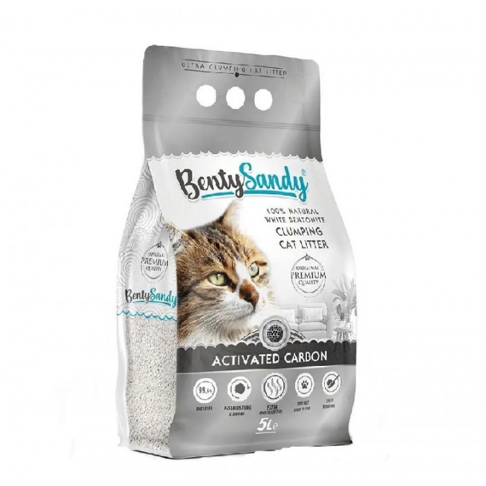 Опис Benty Sandy Activated Carbon, бентонітовий наповнювач для котячого туалету, з активованим вугіллям, без аромату, 5 л