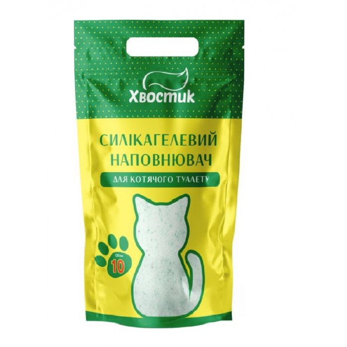 Силікагель — це гігієнічний наповнювач, він чудово справляється з будь-якими бактеріями, підтримуючи чистоту в будинку та охороняючи здоров'я кота. В середньому один пакет 10 л силікагелевого наповнювача Хвостик розрахований на 9 тижнів для одного кота. На цей час ви забуваєте про неприємний запах і зайвий клопіт по догляду за домашньою твариною. Дрібні зелені гранули додають силікагелю Хвостик естетичності і є універсальними як для котів, так і для кішок.